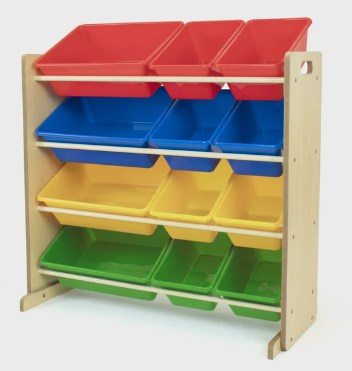 You’ve probably seen this one: a low rack with plastic bins tilted forward, usually in bright, playful colors. It seems like a great idea at first—until it lives in your home.